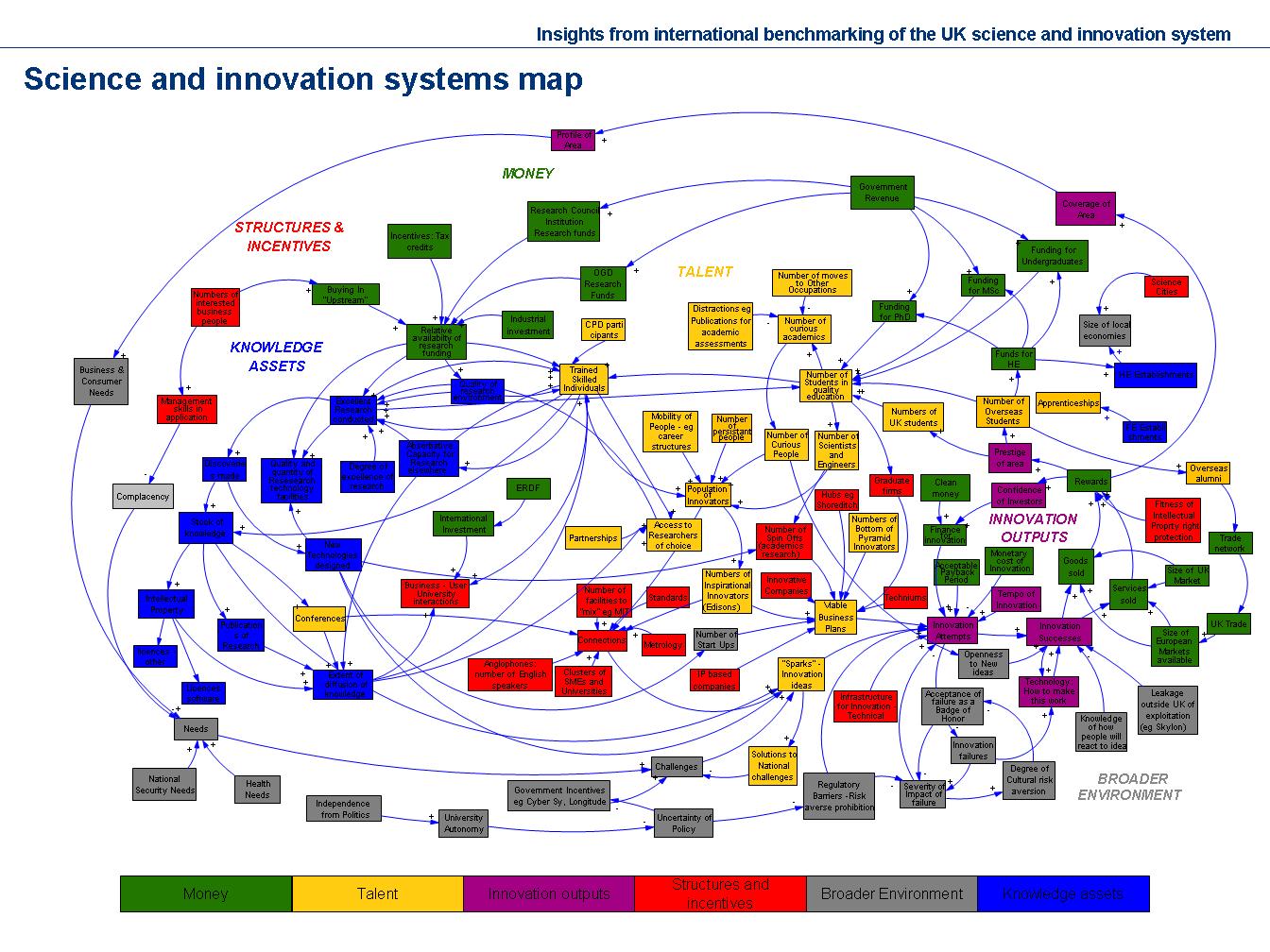 Another problem with mapping is not that there is too much simplicity, but too much complexity. Some science and innovation maps can be hard to navigate, overburdened with too much information, arrows, and puzzling links. The very opposite of good cartography.